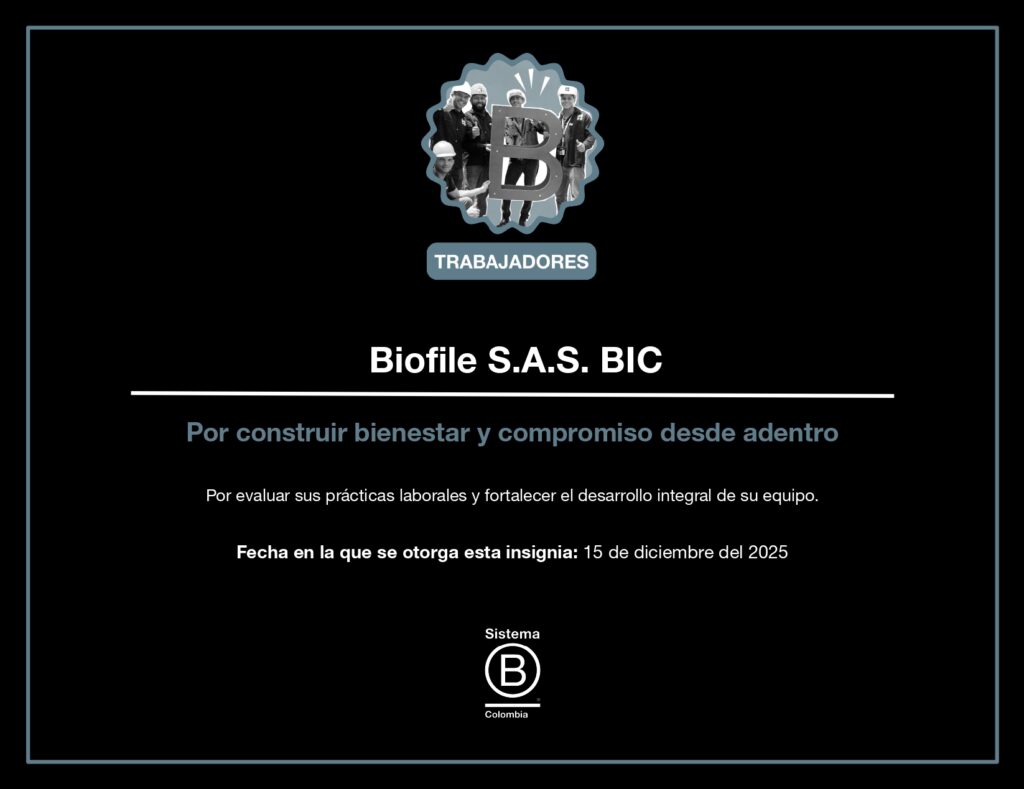 Este logro pertenece a cada persona que forma parte de Biofile y representa una motivación para seguir avanzando. Nos impulsa a continuar fortaleciendo nuestros procesos BIC dentro de la empresa y a mantener vivo el compromiso como trabajadores, promoviendo también desde nuestros hogares prácticas responsables con la sociedad y con el entorno. Es una invitación permanente a no conformarnos y a seguir mejorando.