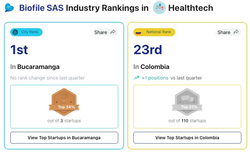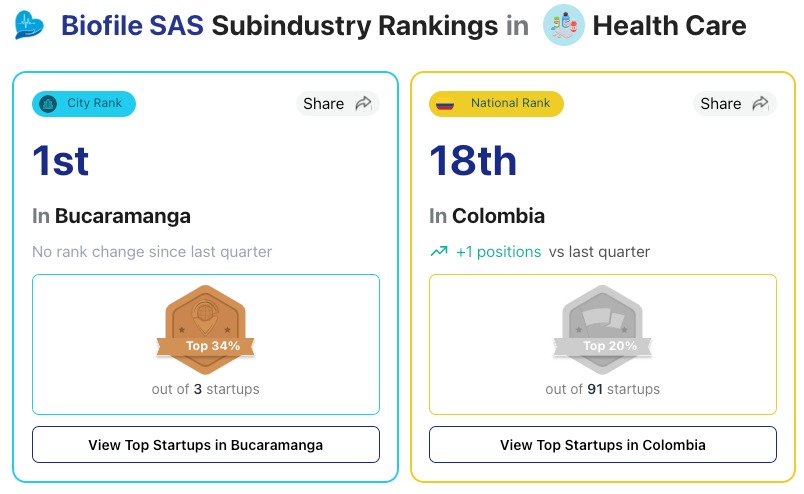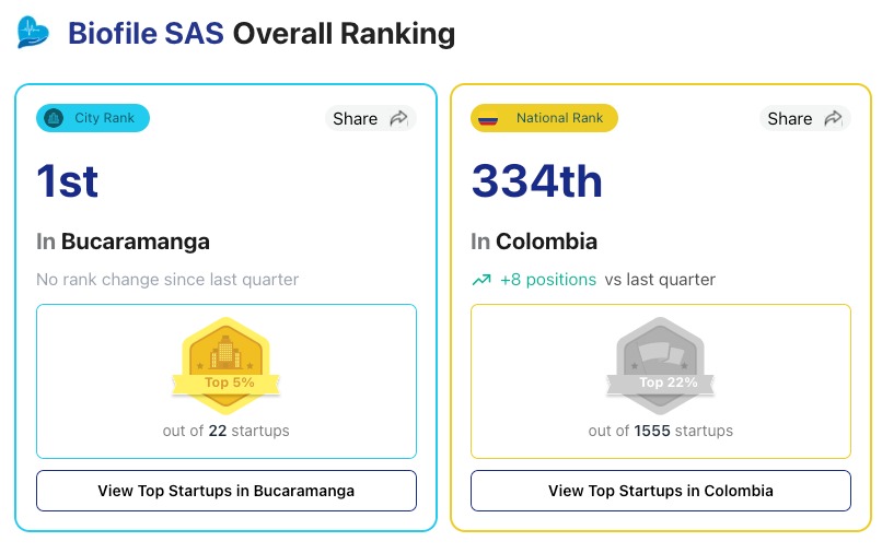 Aquí puedes consultar el ranking: Análisis y comparación de Biofile SAS por StartupBlink.